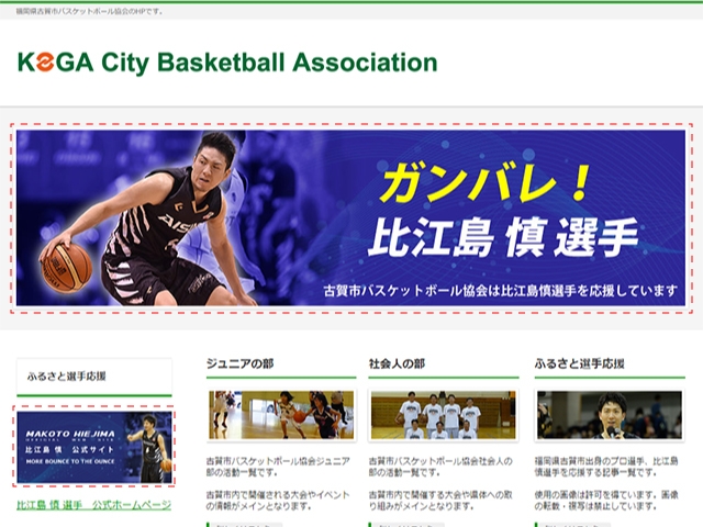 弊社は古賀市バスケットボール協会事務局を兼任しておりますが、その古賀市バスケットボール協会では、現在日本代表でも活躍中の比江島慎 選手を応援するコーナーを設置しました。 今回、比江島選手のマネジメント関係者の皆様からお声を掛けていただき、コーナー新設が実現いたしました。ホームページには大きく載っています。